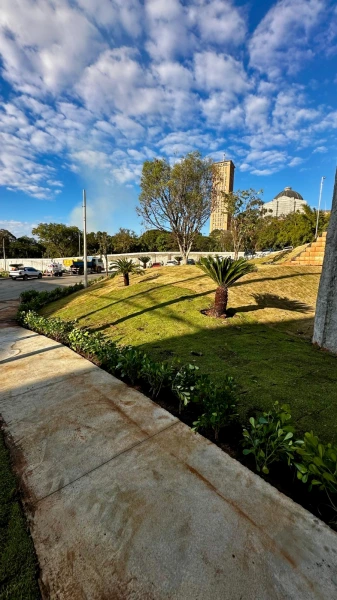 No plantio de grama, controla erosão, filtra poluentes e melhora o ar.